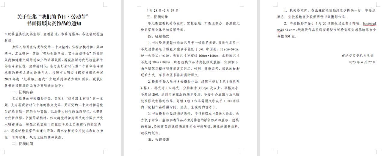 4月28日,市纪委监委组织开展“我们的节日·劳动节”书画摄影比赛,激励党员干部弘扬劳模精神、劳动精神、工匠精神,营造“劳动创造幸福,实干成就伟业”的良好风尚。