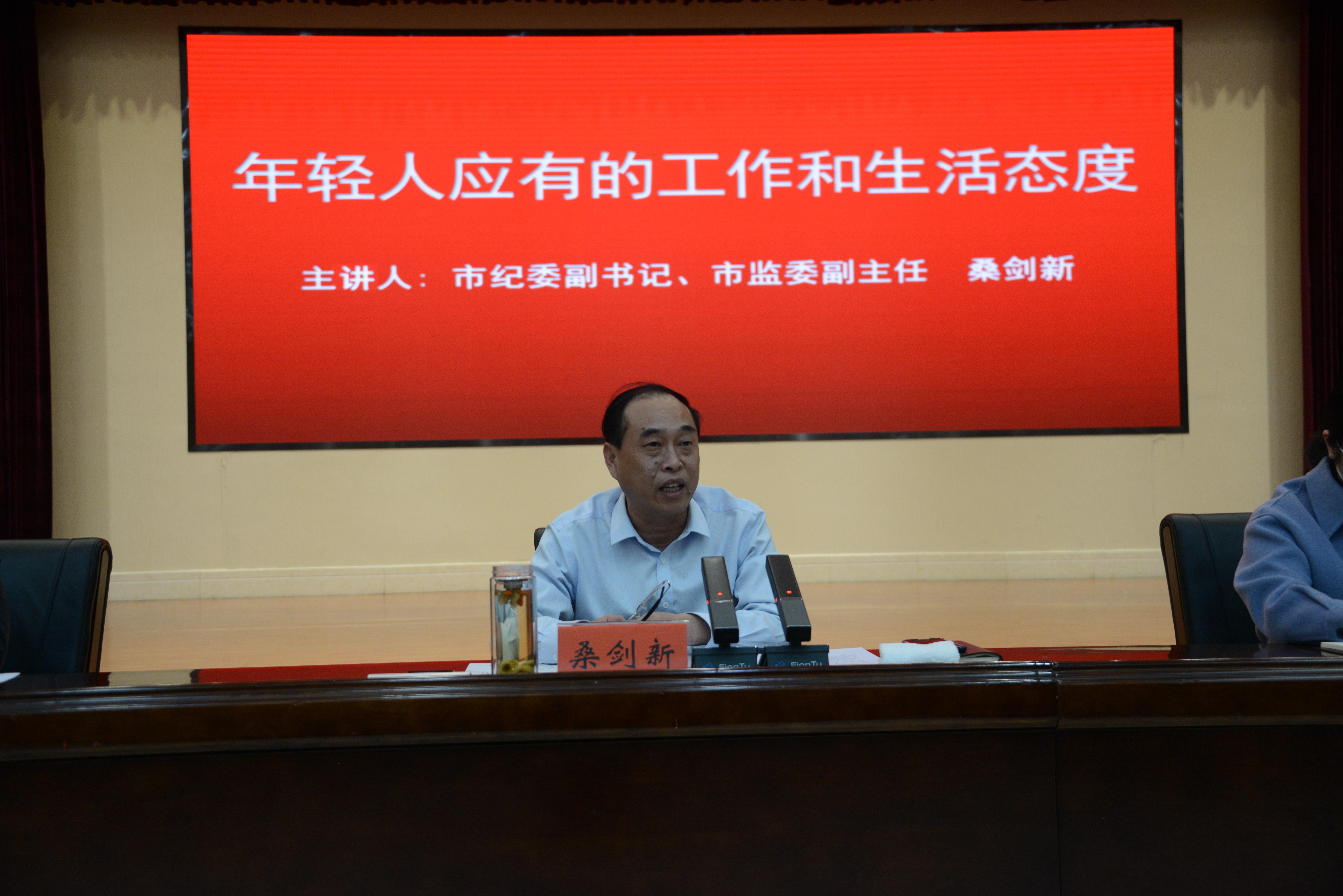 交流发言结束后,市纪委副书记、市监委副主任桑剑新充分肯定了青年干部取得的成长进步,并以《年轻人应有的工作和生活态度》为题为青年干部授课。桑剑新围绕“态度、感恩、付出、磨练、团队、学习、自律、用心、方向、格局”10个关键词寄语青年干部,要求大家要把“格局”作为成功的第一要素,提高站位、把准方向、涵养气量;要养成对结果负责的态度,敢于直面困难,勇于实践、主动担当;要持续强化学习,多读书、读好书,进一步坚定信念、明辨是非、丰富知识、提升气质;要严格自律,经常反省,不断塑造内心强大、心理成熟的自己;要共同营造简单、透明、和谐的机关氛围,打造向心力强、凝聚力强、战斗力强的干部队伍。