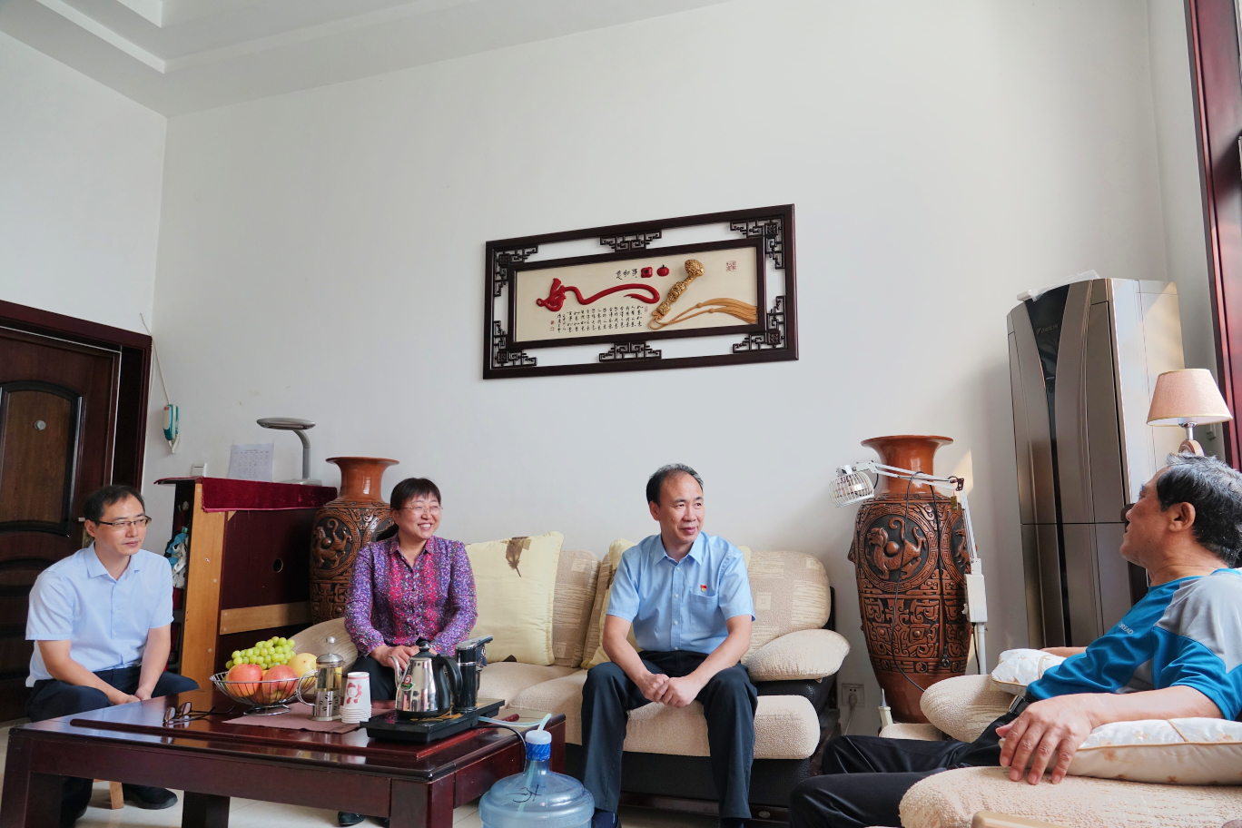 2019年国庆、重阳双节将至。9月27日,市委常委、市纪委书记、市监委主任冯芳喜到4位机关退休老干部家中进行慰问,为老干部们送去节日祝福。