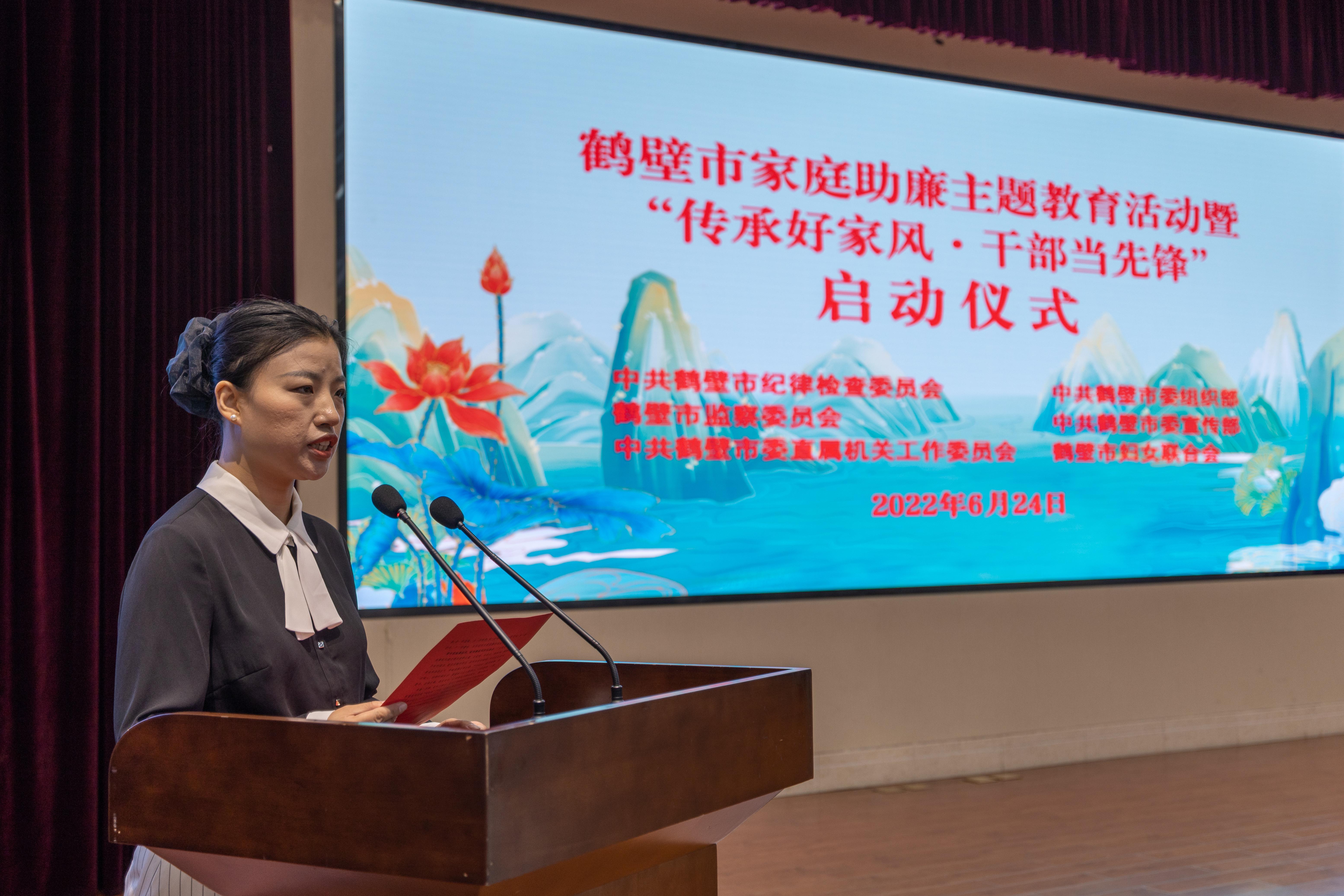 为谋划推动全市清廉家庭建设,市纪委监委联合市委组织部、市委宣传部、市委直属机关工委、市妇联组织近两年新提任的50名县级干部代表携家属,参加家庭助廉主题教育暨“传承好家风·干部当先锋”启动仪式。