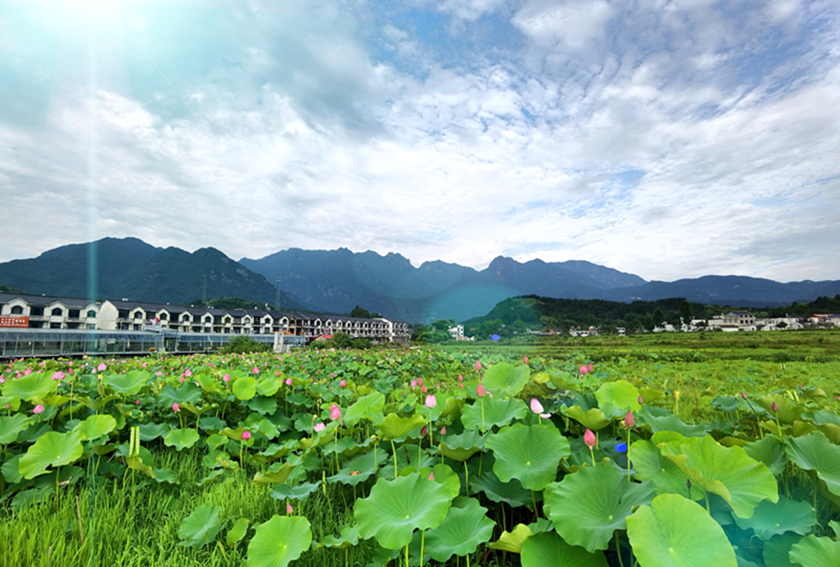 初夏时节,小荷初绽,远山含黛,群山连绵,一排排白墙灰瓦民居在山脚下分外醒目。曾走出开国将军陈明义、抗日英雄赵崇德的红色小村商城县伏山乡里罗城村迎来新面貌,百姓安居乐业,美好生活如诗如画。(商城县纪委监委 周黎明 摄)