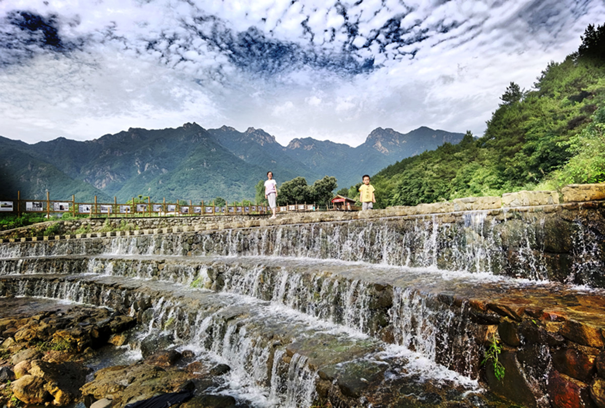 端午后,景色秀美的神农山更加迷人,龙脊长城被绿荫环抱着,畅游的人们仿佛进入了仙境。(沁阳市纪委监委 郅双燕 摄)