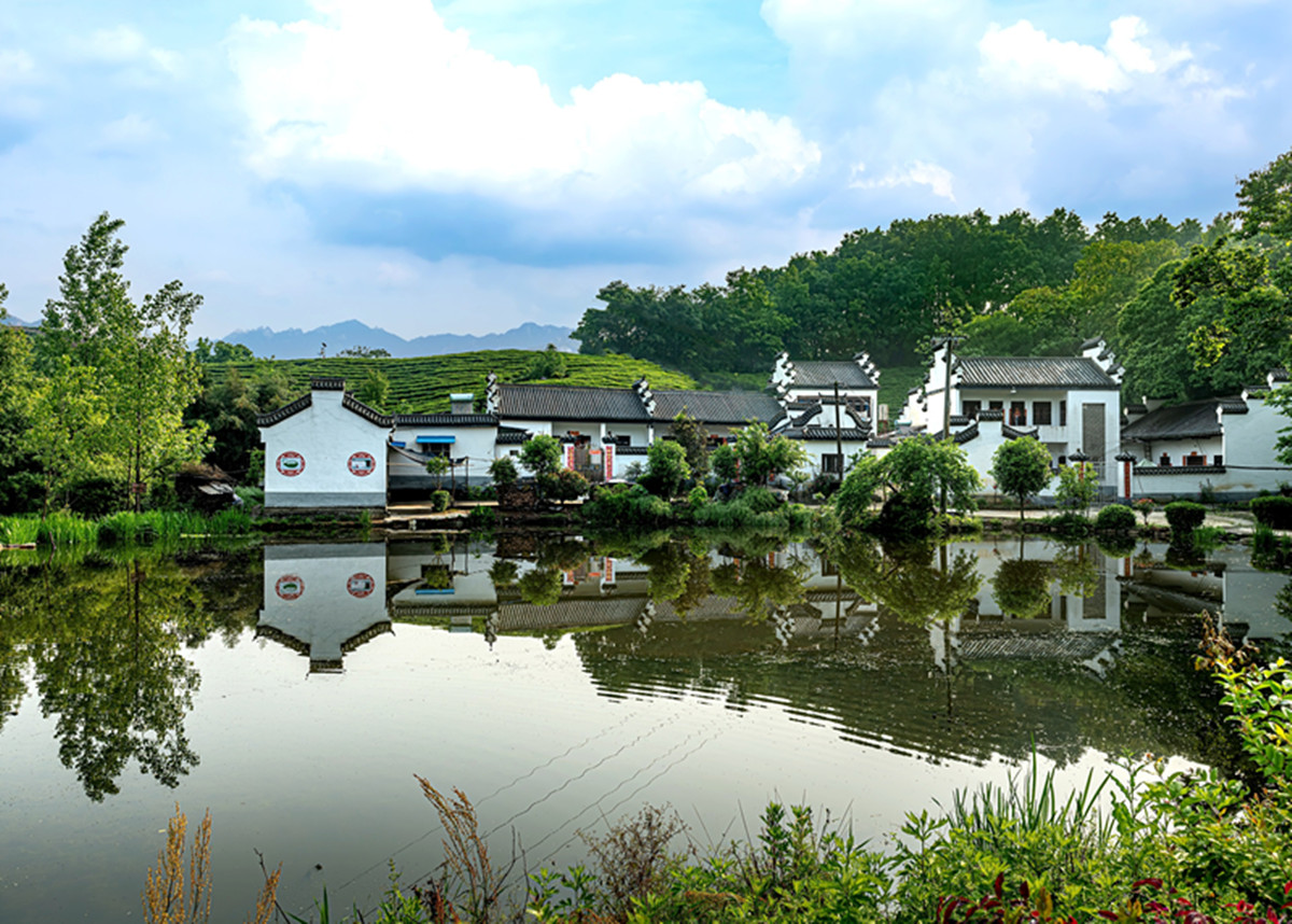 夏日里绿树蔽日,遍地浓荫,楼台影子,倒映池塘,宛若镜中美景。(新密市纪委监委 朱留波 摄)