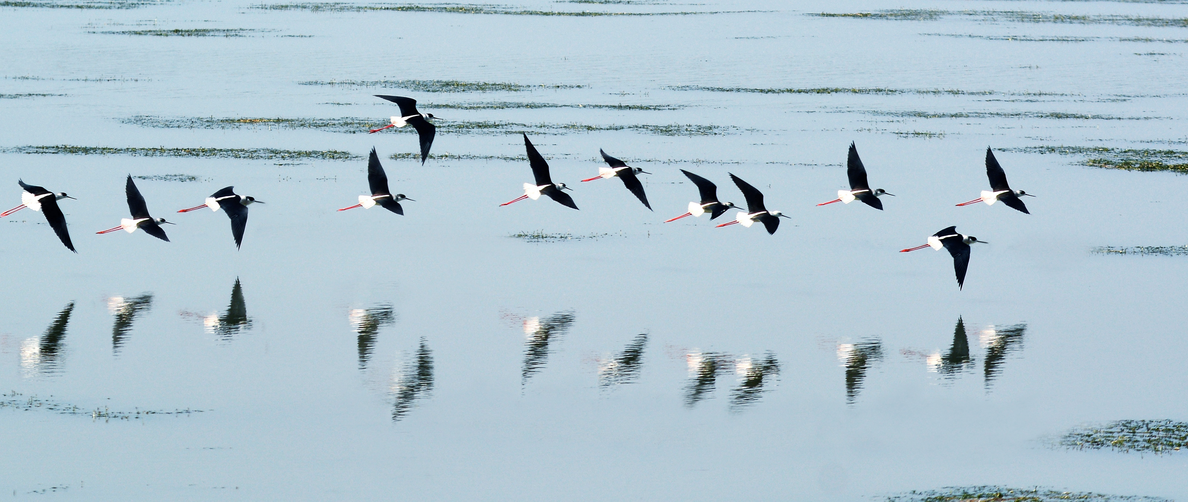 湖面飞鸟排成行(摄影:蒋晓华)