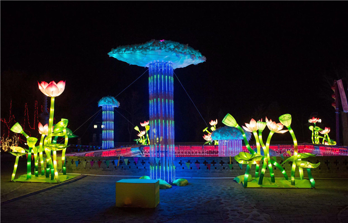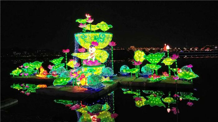 在开封元宵灯会上,湖面上的一片莲花引人注目,廉意甚浓,愿党员干部“莲”以修身,一生平安。