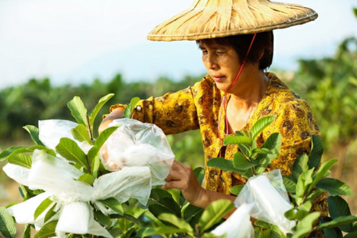 在南方,家庭农场的村民们赶在立冬前,给芭乐穿上“防寒衣”,为过冬做足准备。