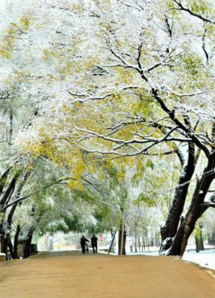 初冬,不如隆冬那般神圣庄严,不如金秋那般收获喜悦,一场初雪后,光洁如絮的雪花散落在树枝上,婷婷妩媚,树木依然苍葱。