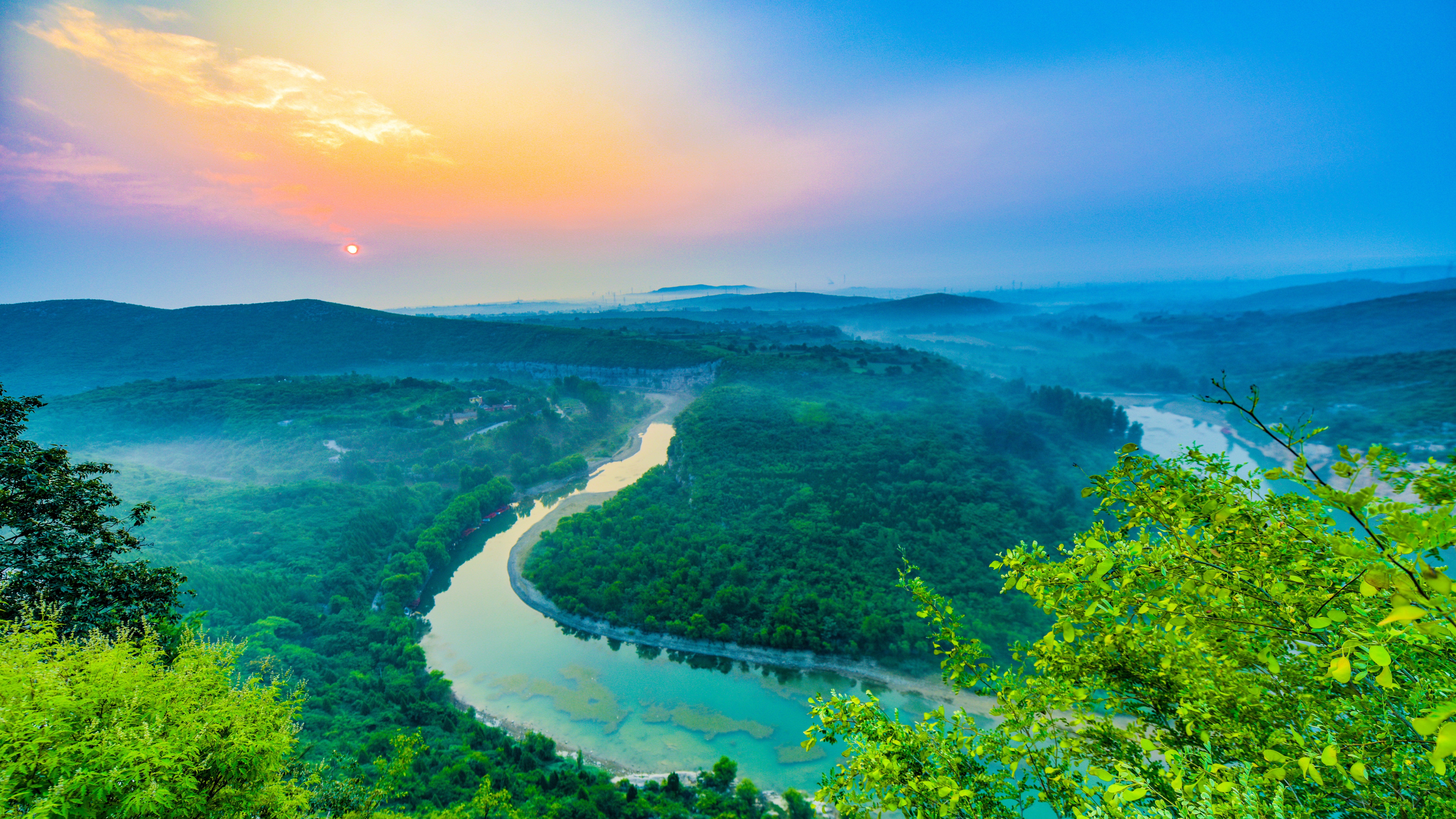 晨光初醒,太极图景区宛如天地初开的画卷,淇水如碧色丝带蜿蜒谷间,两岸山峦起伏、峰峦叠翠,每一寸土地都焕发着蓬勃的生机。(淇滨区纪委监委 丁小翠 摄)