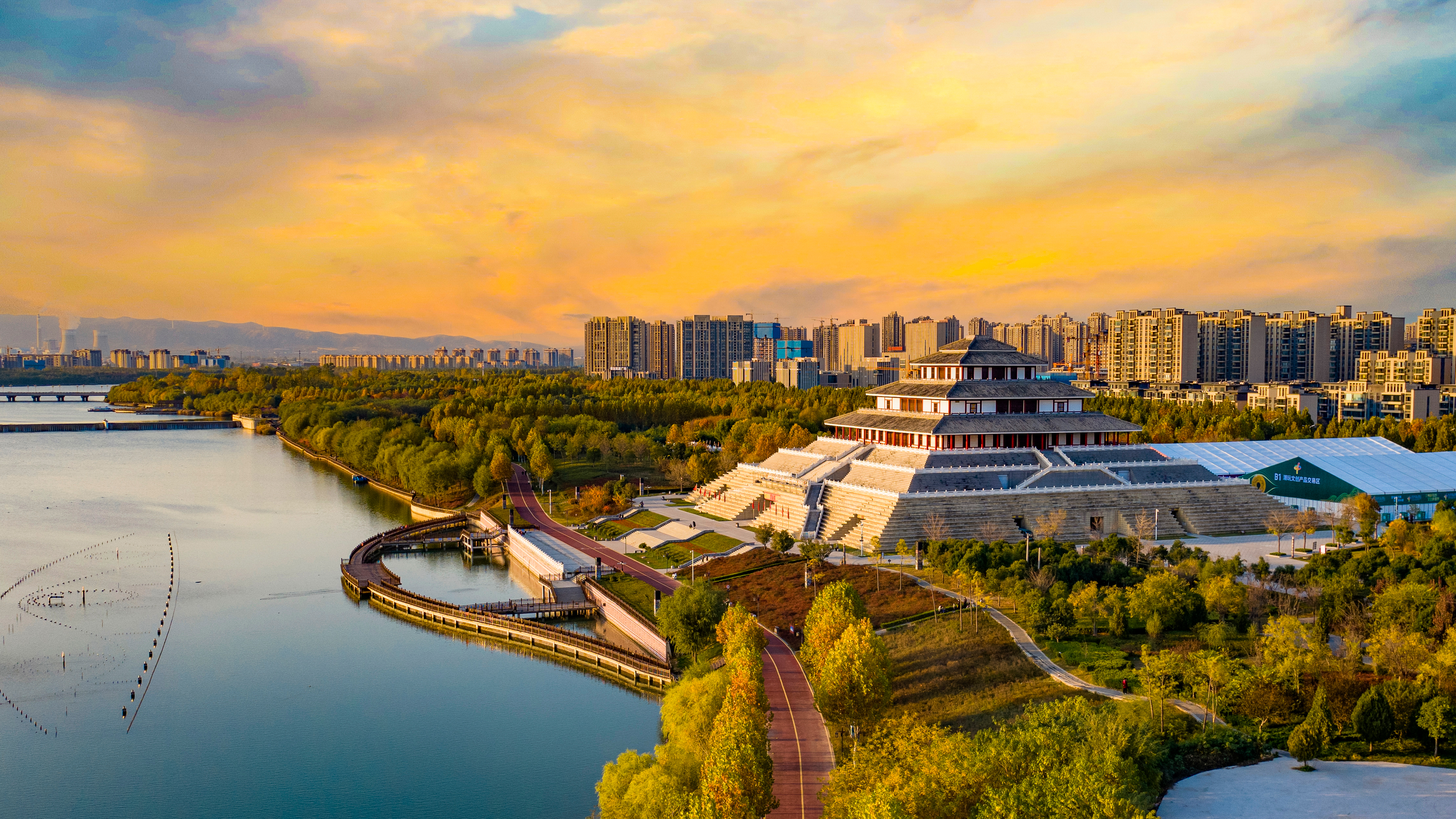 夕阳为鹿台阁披上璀璨的霞衣,静谧的淇水倒映着天光云影,宛若一幅铺展的瑰丽画卷,诉说着鹤壁的古今传承。(驻市文广旅局纪检监察组 刘群 摄)