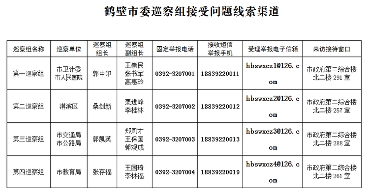根据巡察工作职责,市委巡察组主要受理对上述被巡察对象的举报和反映,其他不属于巡察受理范围的信访问题,按有关规定处理。