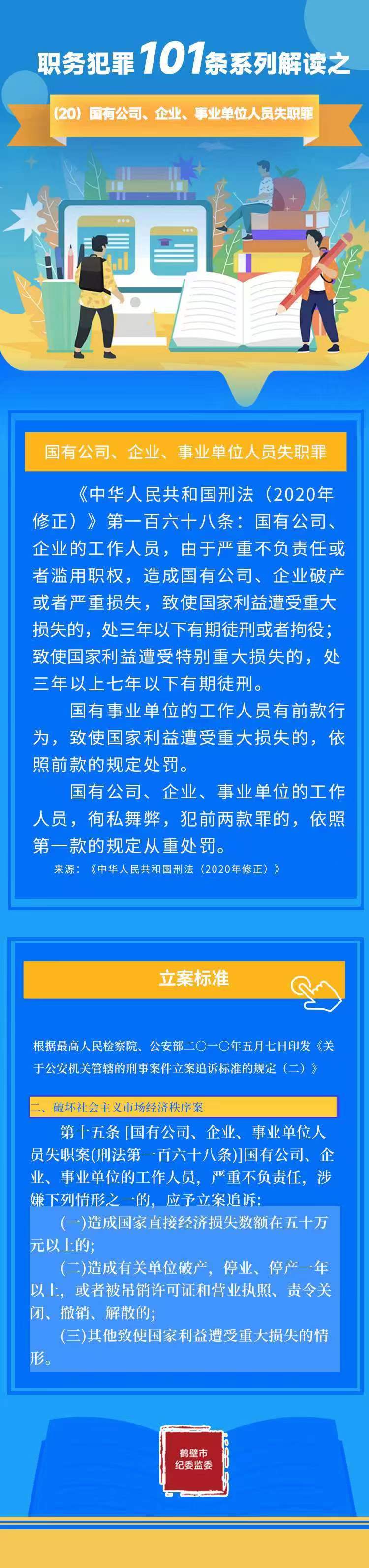 纪法课堂丨职务犯罪101条系列解读之⑳国有公司、企业、事业单位人员失职罪