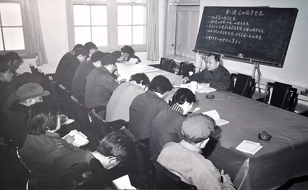 1980年2月,党的十一届五中全会正式通过《关于党内政治生活的若干准则》并公布施行。1980年3月15日,这份重要文献在《人民日报》头版头条登载。图为当时的上海第十七棉纺织厂全体党员正在学习《准则》。(资料图片)