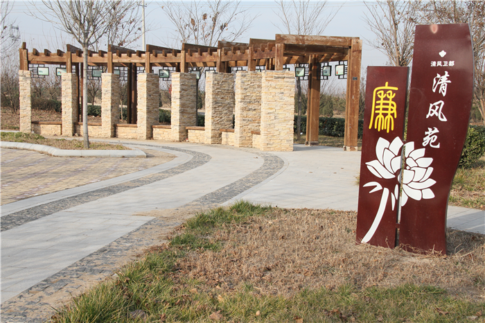 今年以来,淇县卫都街道投资 12万元,在泰山路和南水北调渠交叉口建设廉政文化游园--“清风苑”,在永达路安装廉政文化道旗标牌100余块,以多种形式深化清廉文化宣传教育。