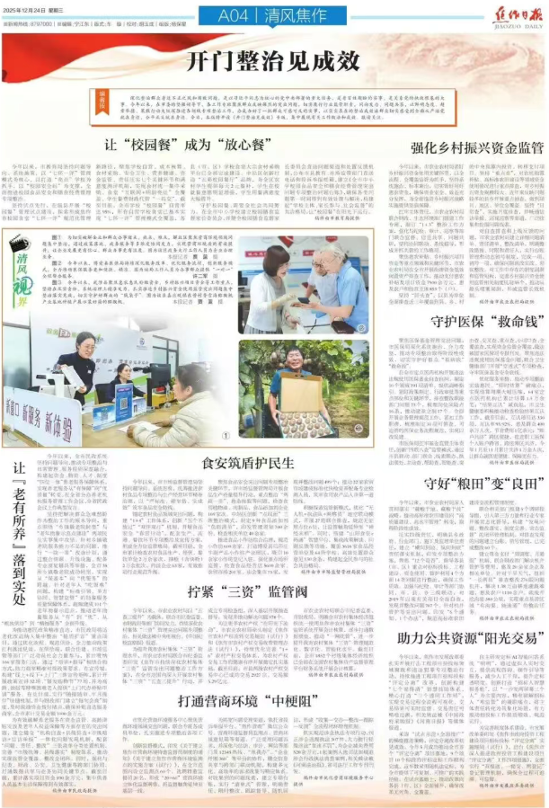 深化整治群众身边不正之风和腐败问题,是以习近平同志为核心的党中央部署的重大任务,是老百姓期盼的实事,是关系党的执政根基的大事。今年以来,在市委的坚强领导下,各工作专班聚焦群众反映强烈的突出问题,切实履行行业监管职责,同向发力、同题共答,以鲜明态度、超常举措、果敢行动大纵深推进各领域专项整治工作,办成办好了一批群众可感可及的实事,以实实在在的整治成效让群众切实感受到全面从严治党就在身边、公平正义就在身边。《焦作日报》开设“开门整治见成效”专版,集中展现有关工作做法和成效。敬请关注。
