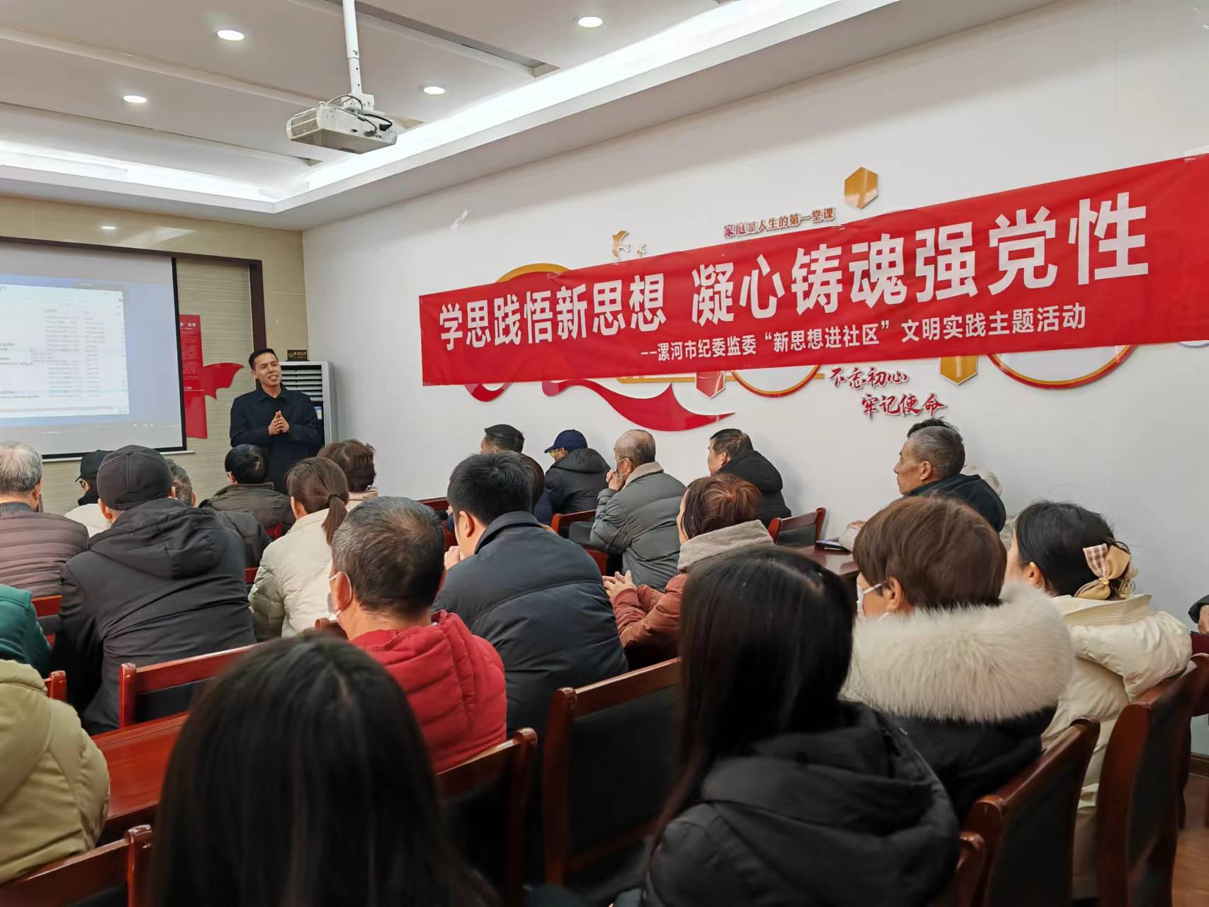 学思践悟新思想,雷锋精神润初心。在源汇区双龙社区党群服务中心,一场新思想宣讲活动正在进行,市纪委监委将学习贯彻习近平新时代中国特色社会主义思想与共建社区主题党日活动相结合,通过入脑入心的实地宣讲、发人深省的视频展播,进一步筑牢社区党员干部理想信念,将雷锋精神转化为服务群众的具体行动。