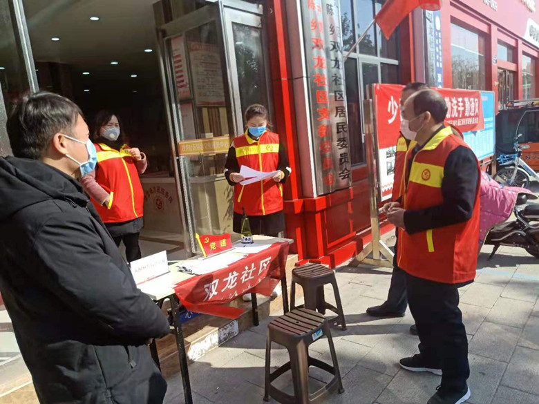 2月11日上午市委巡察机构党总支负责同志到单位驻地双龙社区,了解社区疫情防控工作,组织党员志愿者服务队,增援社区疫情防控。