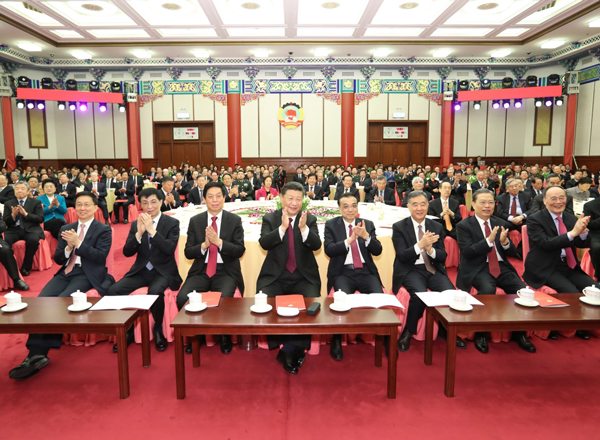 茶话会上,习近平等来到各界人士中间,同大家亲切握手,互致问候。部分全国政协委员和文艺工作者表演了精彩的节目。最后,全场起立高唱《团结就是力量》,会场内洋溢着欢乐祥和的节日气氛。