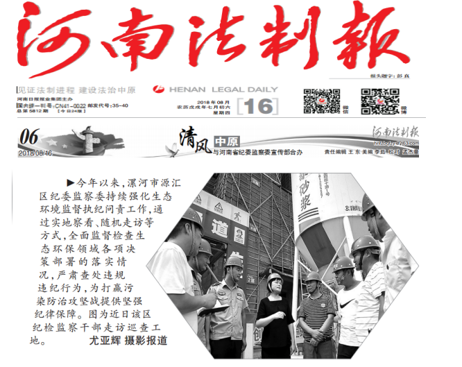 ▶今年以来,漯河市源汇区纪委监察委持续强化生态环境监督执纪问责工作,通过实地察看、随机走访等方式,全面监督检查生态环保领域各项决策部署的落实情况,严肃查处违规违纪行为,为打赢污染防治攻坚战提供坚强纪律保障。图为近日该区纪检监察干部走访巡查工地。 尤亚辉摄影报道