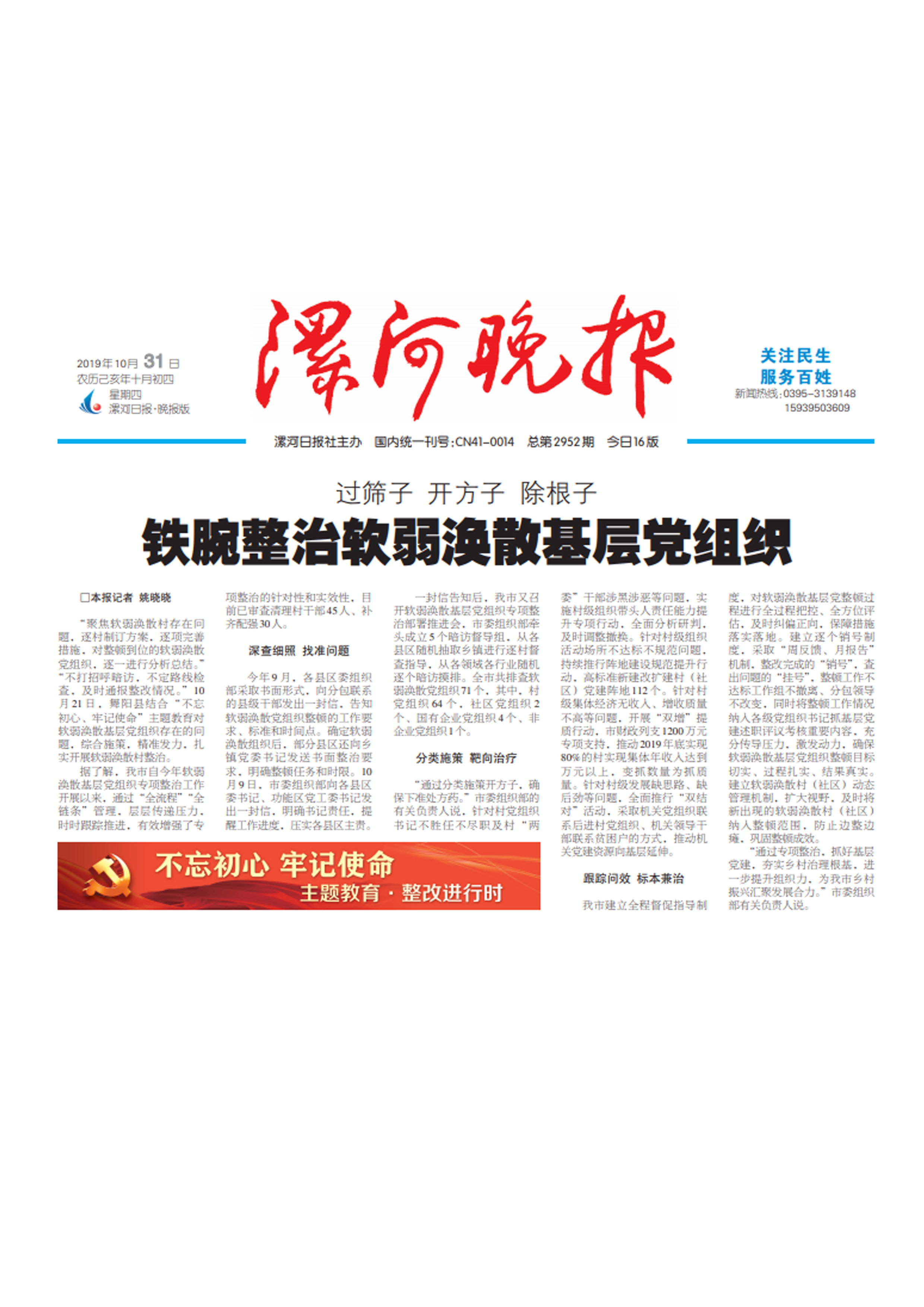 据了解,我市自今年软弱涣散基层党组织专项整治工作开展以来,通过“全流程”“全链条”管理,层层传递压力,时时跟踪推进,有效增强了专项整治的针对性和实效性,目前已审查清理村干部45人、补齐配强30人。