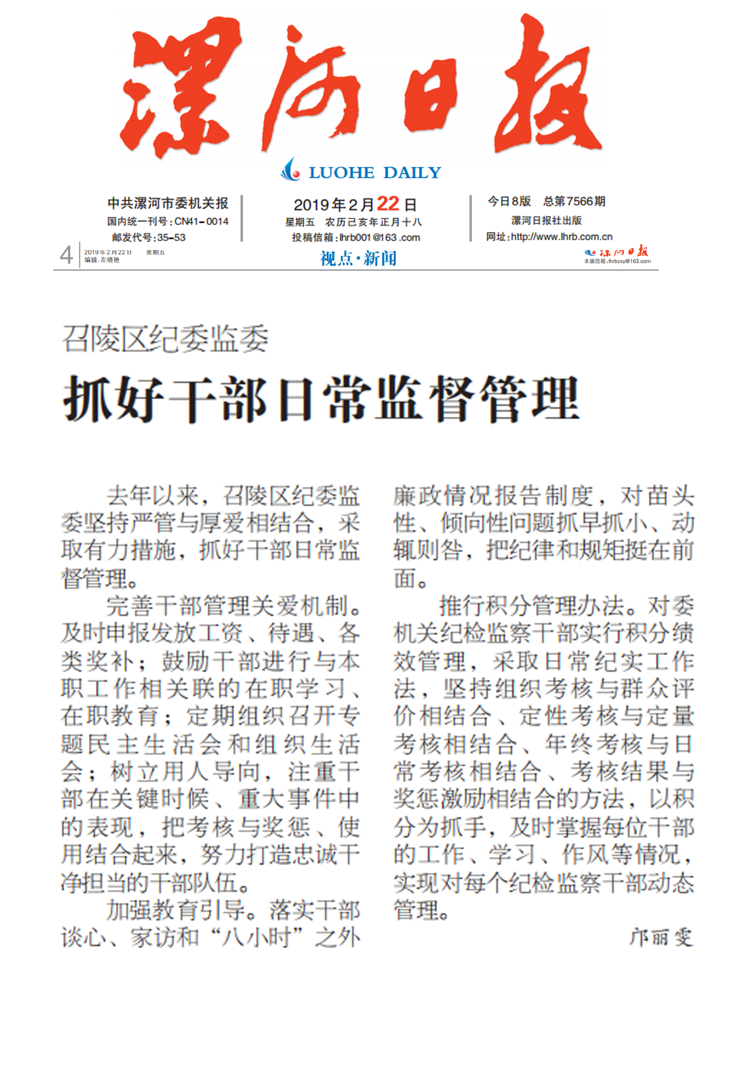 去年以来,召陵区纪委监委坚持严管与厚爱相结合,采取有力措施,抓好干部日常监督管理。