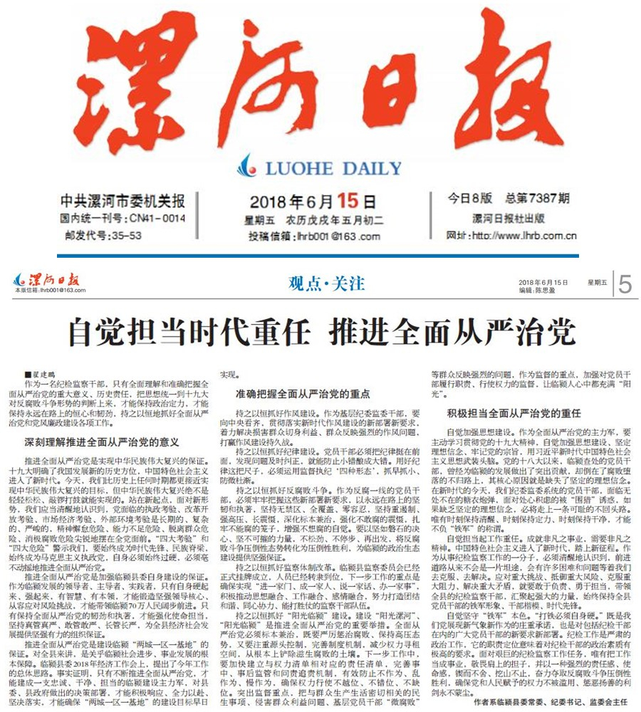 (作者 临颍县委常委、纪委书记、监委会主任 翟建鹏)