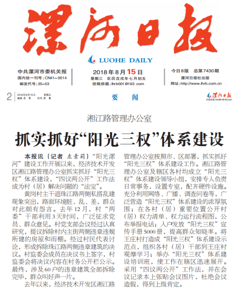 (记者 左素莉)“阳光漯河”建设工作开展以来,经济技术开发区湘江路管理办公室抓实抓好“阳光三权”体系建设,“四议两公开”工作法成为村(居)解决问题的“法宝”。