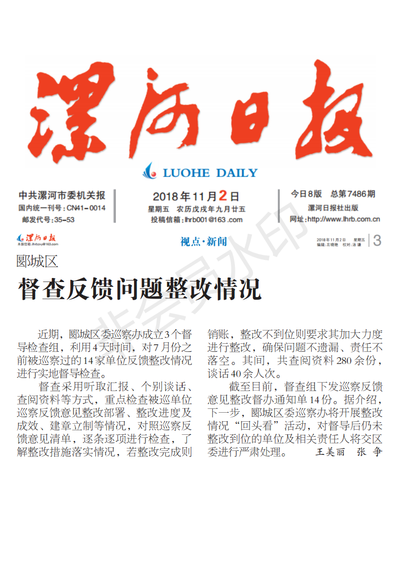 据了解,为进一步推进以案促改工作,召陵区成立了督查组,主要采取听取汇报、查阅资料、座谈了解等方式,对各单位以案促改工作开展情况进行监督检查,重点检查宣传动员是否落实、查摆剖析是否深刻、整改落实是否到位、是否针对典型案件暴露出来的问题对现有制度全面审查、评估和清理,对发现的25个问题及时督促整改。