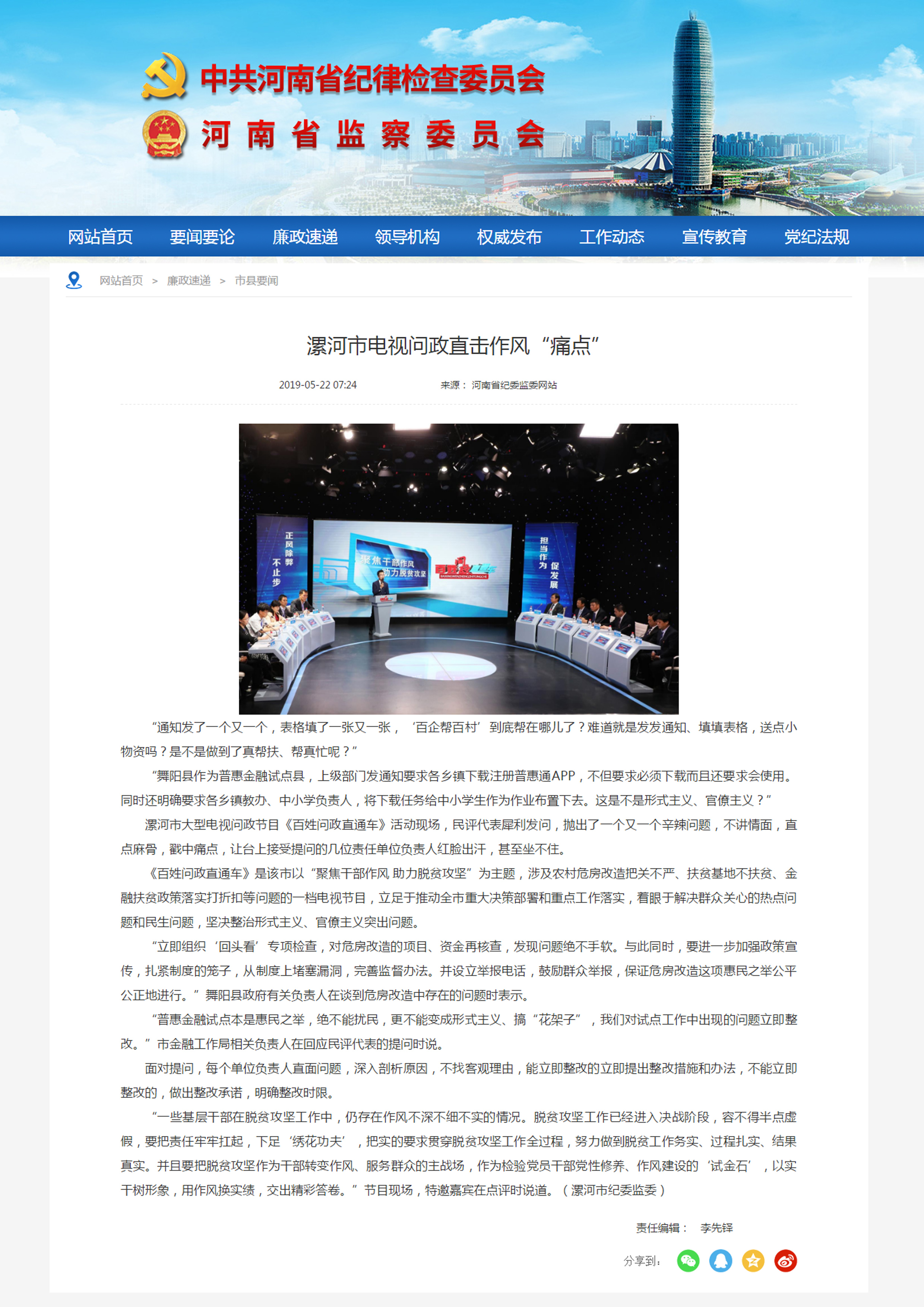 《百姓问政直通车》是该市以“聚焦干部作风 助力脱贫攻坚”为主题,涉及农村危房改造把关不严、扶贫基地不扶贫、金融扶贫政策落实打折扣等问题的一档电视节目,立足于推动全市重大决策部署和重点工作落实,着眼于解决群众关心的热点问题和民生问题,坚决整治形式主义、官僚主义突出问题。