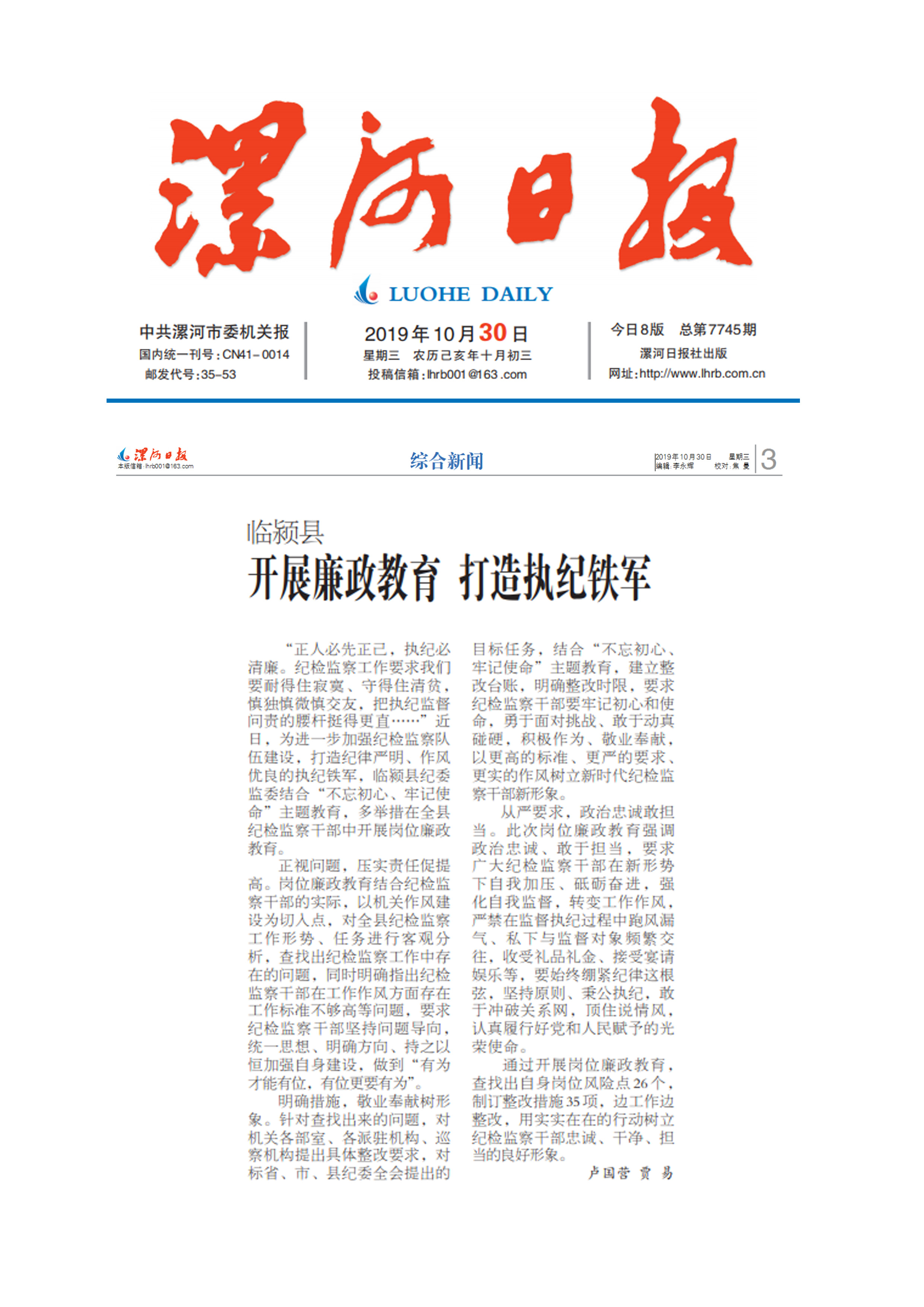 “正人必先正己,执纪必清廉。纪检监察工作要求我们要耐得住寂寞、守得住清贫,慎独慎微慎交友,把执纪监督问责的腰杆挺得更直……”近日,为进一步加强纪检监察队伍建设,打造纪律严明、作风优良的执纪铁军,临颍县纪委监委结合“不忘初心、牢记使命”主题教育,多举措在全县纪检监察干部中开展岗位廉政教育。