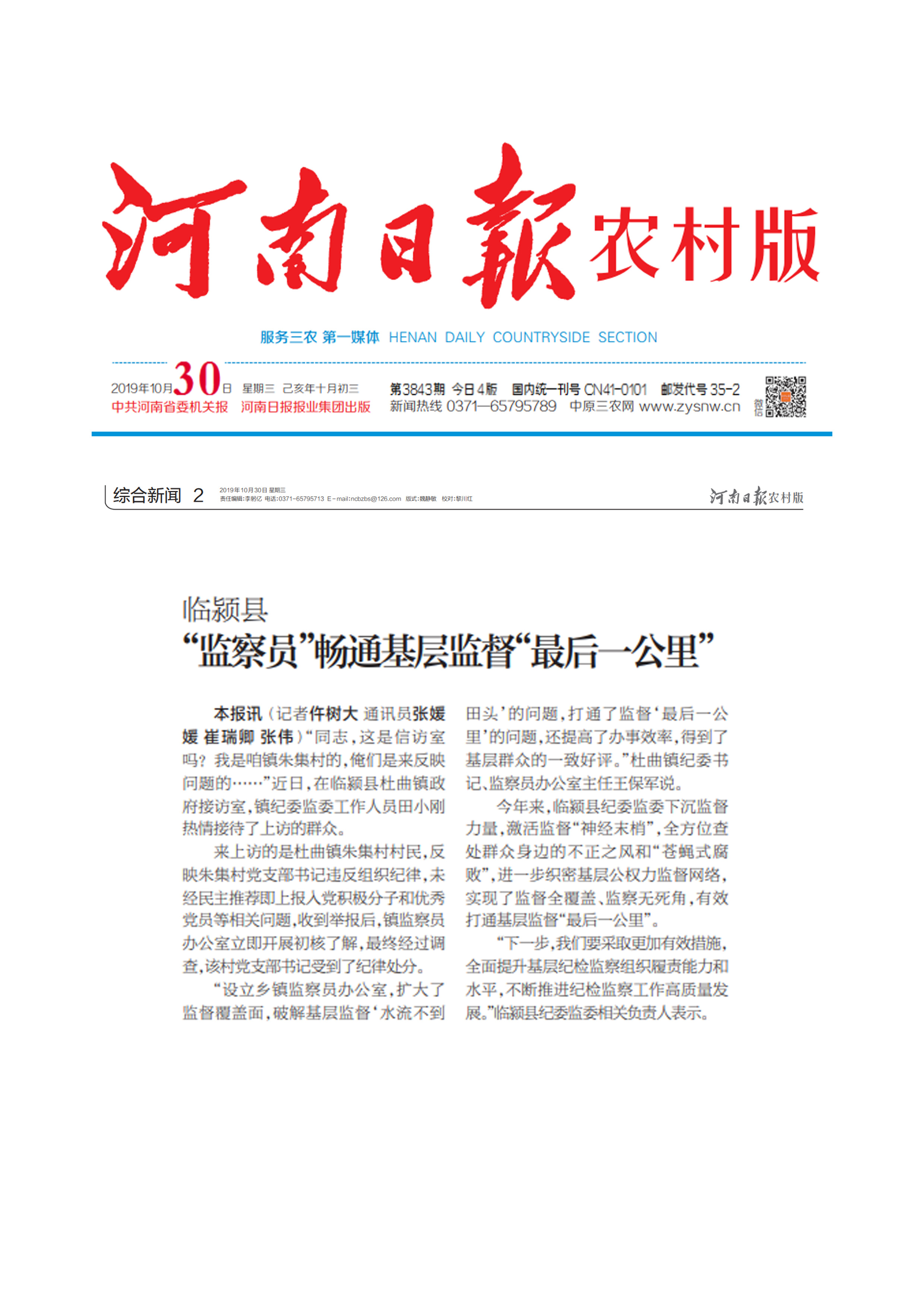 今年来,临颍县纪委监委下沉监督力量,激活监督“神经末梢”,全方位查处群众身边的不正之风和“苍蝇式腐败”,进一步织密基层公权力监督网络,实现了监督全覆盖、监察无死角,有效打通基层监督“最后一公里”。