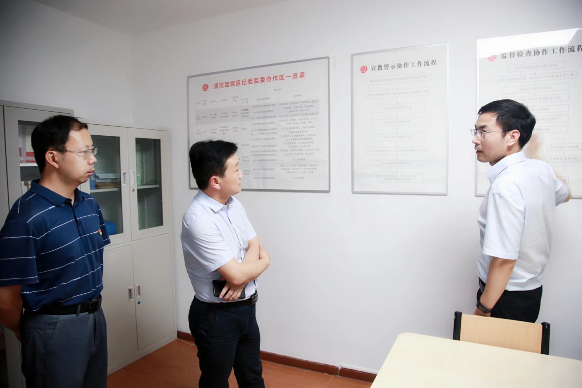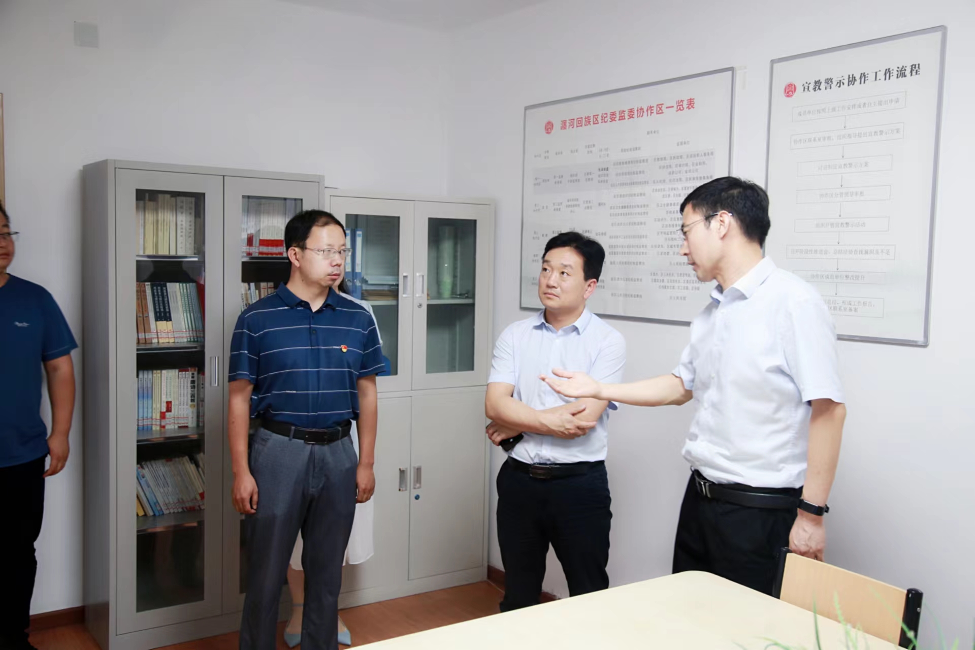6月14日下午,市纪委监委宣传部长李江涛带队到我委调研规范化建设和“明白纸”工作,区委常委、区纪委书记、监委主任张建刚等人陪同调研。
