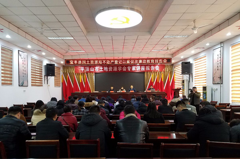 12月7日上午,宝丰县国土资源局不动产登记以案促改廉政教育报告会暨平顶山市土地资源学会专家讲座报告会在该局六楼会议室召开。