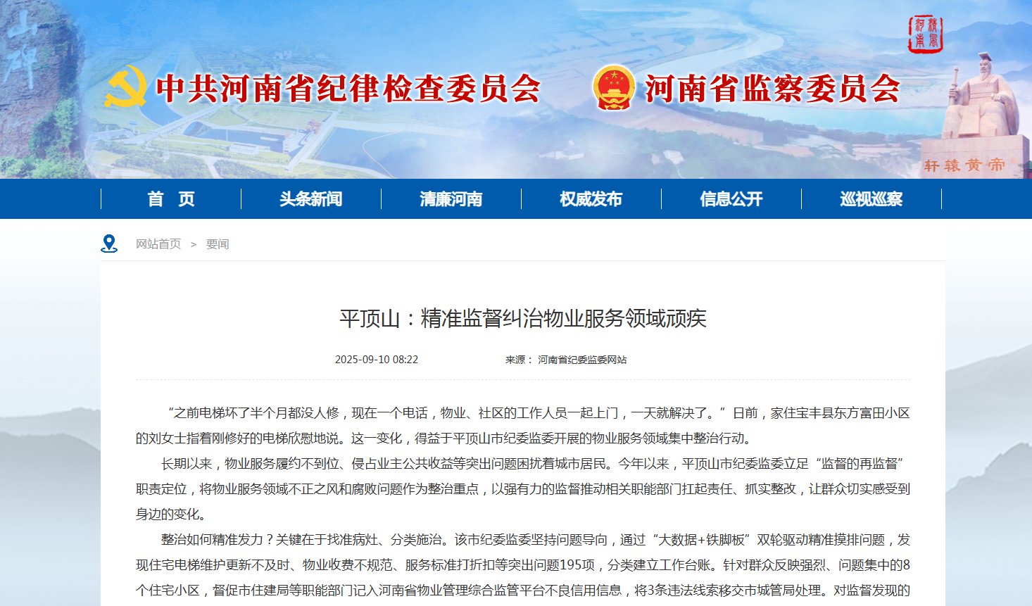 长期以来,物业服务履约不到位、侵占业主公共收益等突出问题困扰着城市居民。今年以来,平顶山市纪委监委立足“监督的再监督”职责定位,将物业服务领域不正之风和腐败问题作为整治重点,以强有力的监督推动相关职能部门扛起责任、抓实整改,让群众切实感受到身边的变化。