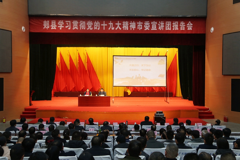 11月30日下午,郏县会议中心座无虚席。全县学习贯彻党的十九大精神市委宣讲团报告会正在这里举行。市委宣讲团成员、市委组织部正县级组织员滕跃丽做专题报告,部分离退休老干部、全县科级以上干部近千人聆听了报告。