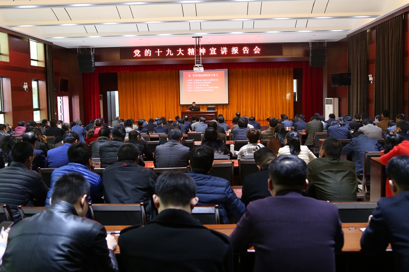 为进一步深入学习宣传贯彻党的十九大精神,示范区举办党的十九大精神报告会,邀请到市委党的十九大精神宣讲团成员、市委党校政治经济学教研室主任、副教授周海清进行宣讲,示范区副科级以上党员干部共300余人到场参加报告会。