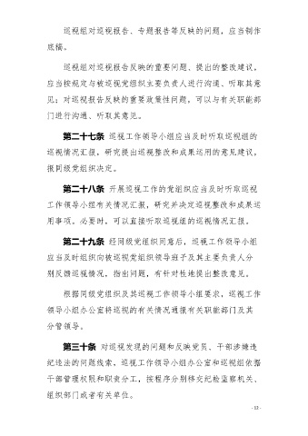 第二十八条 开展巡视工作的党组织应当及时听取巡视