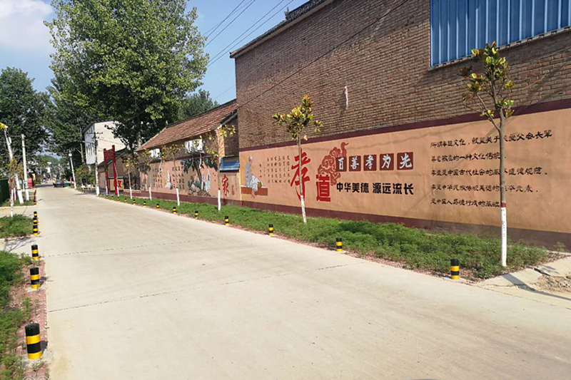 墙体文化主要包含廉洁勤政、孝老爱亲、敬业奉献、见义勇为、诚实守信,助人为乐等内容,大力倡导移风易俗新理念,促使党员干部群众践行婚丧嫁娶简办、厚养薄葬的文明新风尚,营造高尚的精神文化氛围。