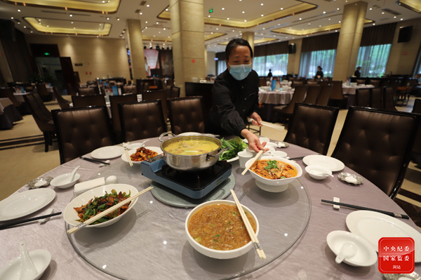四川省成都市锦江区开展“文明餐桌”行动,各餐饮单位100%配备公筷公勺,规格和颜色上明显区别于自用筷勺,推动形成健康用餐、文明用餐的好氛围。(四川省成都市锦江区纪委监委供 封金剑 摄)