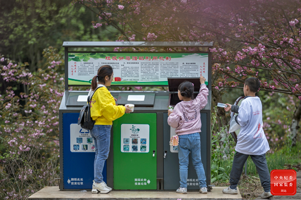 重庆市南川区通过设置分类垃圾桶、分类投放点、开设积分兑换超市等方式,推进垃圾分类,引导市民养成绿色环保文明的生活习惯,让环保卫生理念深入人心。(重庆市南川区纪委监委供 赵希 摄)