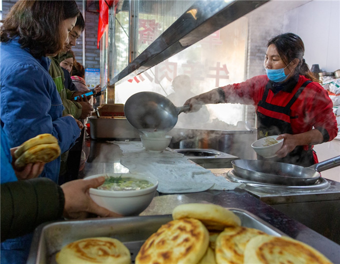 立冬时节,一碗热气腾腾的牛肉汤,配上香酥的烧饼,开启了元气满满的一天。历久弥新的洛阳汤文化,传承的不仅是美味,更是安静平实的幸福。(洛阳市吉利区纪委监委 吕学飞 摄)