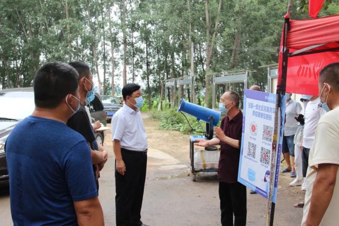 8月8日下午,扶沟县纪委书记、县监委主任李明朗在柴岗乡塔湾村疫情防控监测点,检查督导疫情防控落实情况,要求防控卡点人员时刻绷紧安全弦,筑牢疫情防控安全防线。(扶沟县纪委监委吴彦琼摄)
