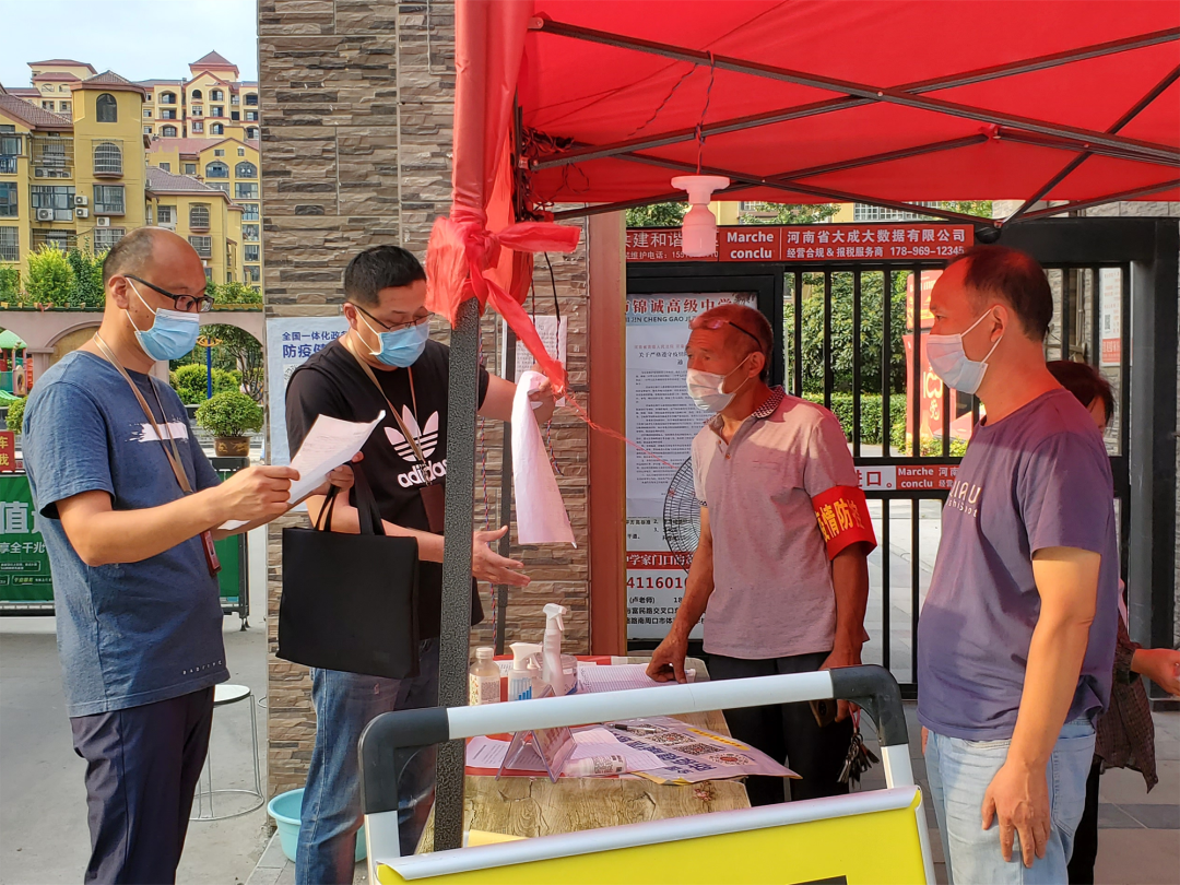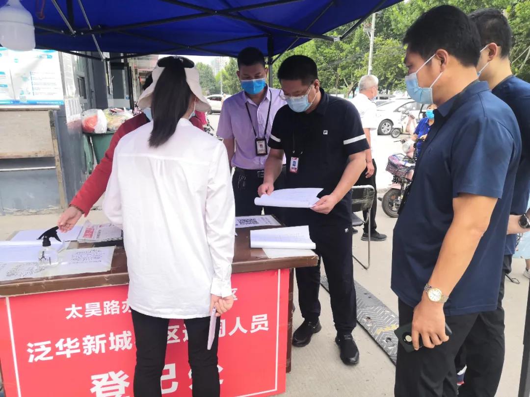 8月10日,开发区纪委书记胡海涛带领区纪委疫情防控督导组在泛华新城社区,就社区防控点值班人员在岗在位,进出人员扫码、体温测量、登记,防疫物资配备等情况进行监督检查。(开发区纪委常莲摄)
