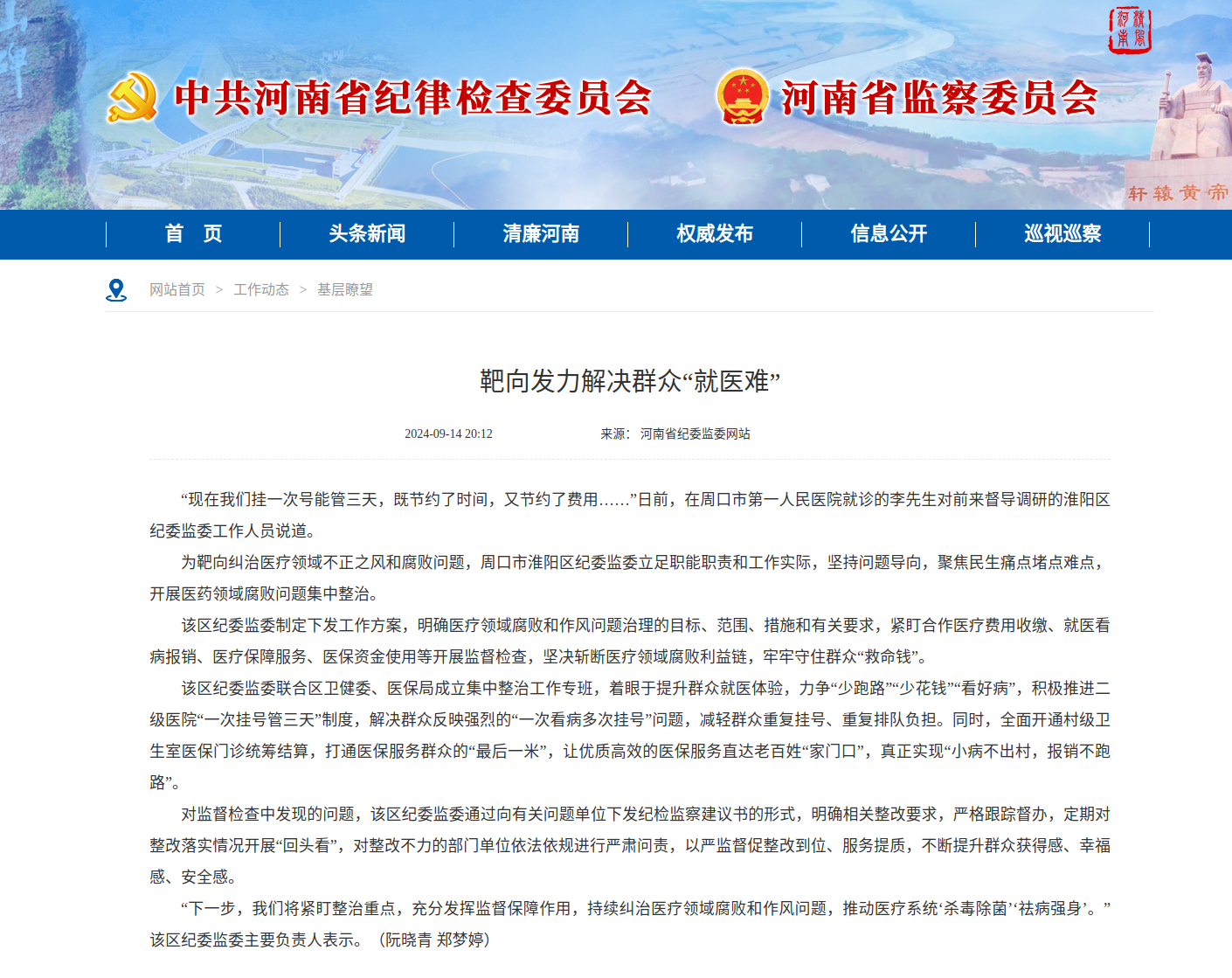 为靶向纠治医疗领域不正之风和腐败问题,周口市淮阳区纪委监委立足职能职责和工作实际,坚持问题导向,聚焦民生痛点堵点难点,开展医药领域腐败问题集中整治。
