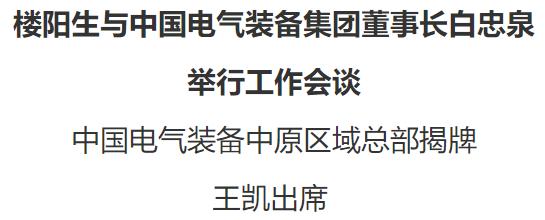 楼阳生、白忠泉为中国电气装备中原区域总部揭牌。省政府、郑州市政府分别与中国电气装备集团签署合作协议。