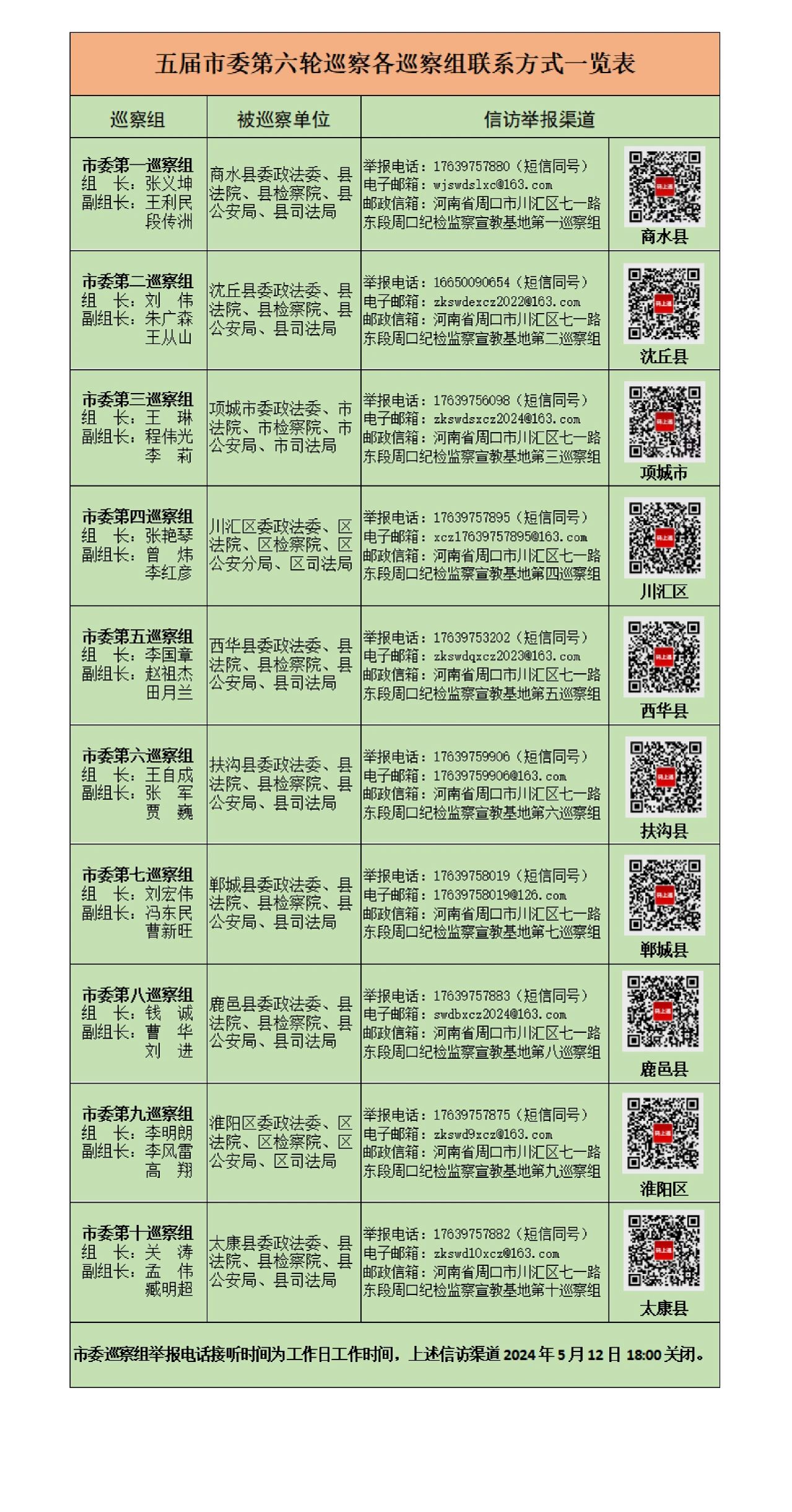 【上级巡察动态--进驻篇】五届周口市委第六轮巡察完成进驻!附10个巡察组联系方式