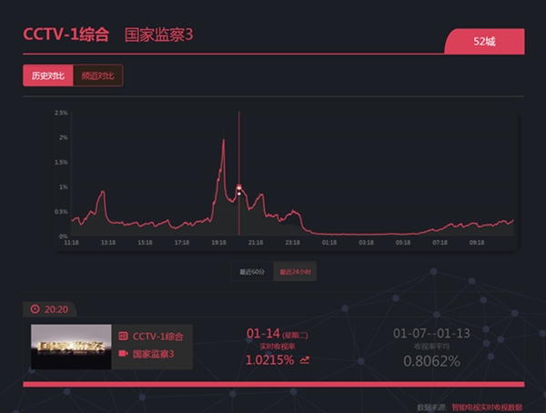 《国家监察》在央视综合频道24小时收视率排名第二