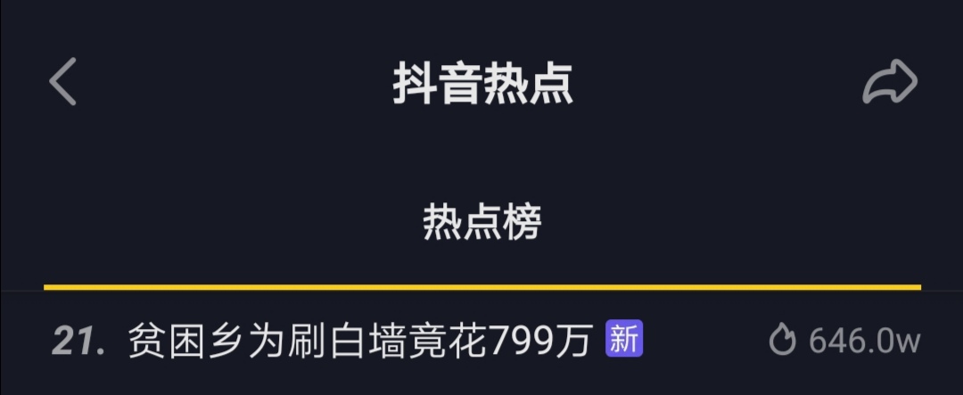 抖音热点榜21位——“贫困乡为刷白墙竟花799万”