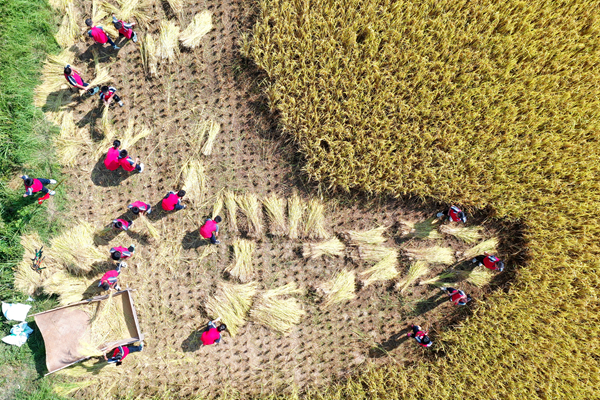 教育不仅仅局限于校园,贵州省余庆县凉风小学的孩子们走进金灿灿的田野,在劳动中感受农耕文化,在亲身实践中体验农耕辛苦,促进德智体美劳全面发展。(贵州省余庆县纪委监委供 李宁 摄)