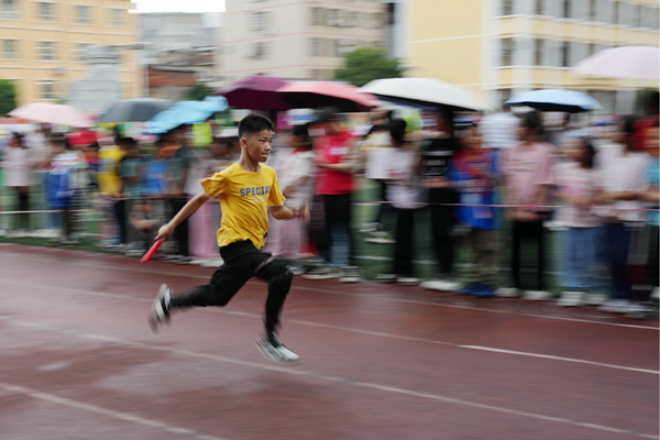 广西壮族自治区北流市城西中学体育场的塑胶跑道上,一场趣味运动会正如火如荼地进行着,学生们享受着体育运动带来的乐趣,速度与激情于此绽放,美好的青春在这一瞬间定格。(广西壮族自治区北流市纪委监委供 陈希璇 摄)