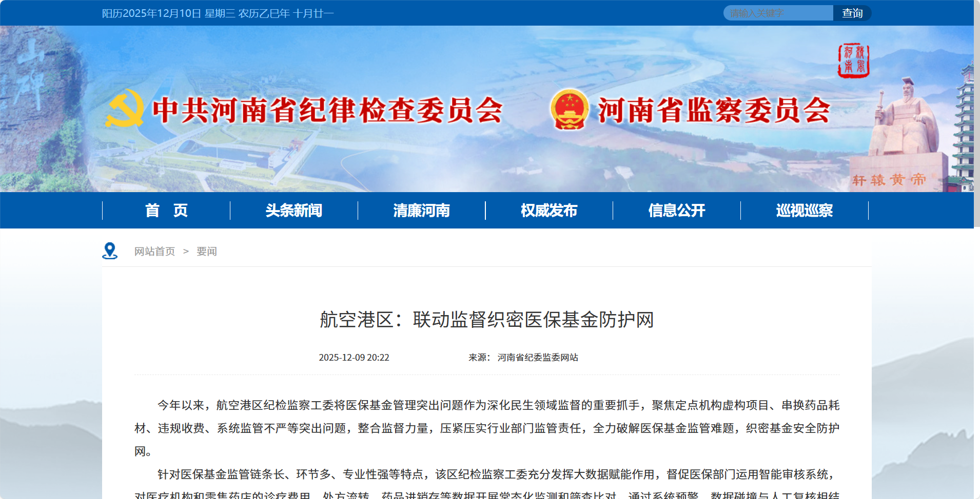 “医保基金是老百姓的‘看病钱’‘救命钱’。下一步,我们将持续深化专项整治,建立源头防控、过程监管、责任落实的长效机制,推动形成办案、治理、监督、教育的有效闭环,切实将整改成效转化为治理效能。”航空港区纪检监察工委相关负责人表示。(马帅 蒋洪超)